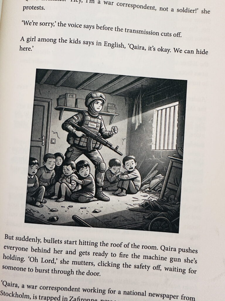 The correspondence between Qaira and Arman forms the emotional spine of the book. As a shy young girl in Sweden, Qaira followed her father’s advice to find a letter buddy through a newspaper program. This led her to Arman, a boy from Andhra Pradesh, India. Their letters became a sanctuary where they shared their deepest feelings and dreams for the future. Qaira aspired to find her purpose through journalism, while Arman dreamed of serving his country in the military or police. These childhood promises are tested when the war in Zafironne forces them into the same dangerous geography, as Arman joins the rescue force specifically to find the girl who had been his lifeline through years of letters.