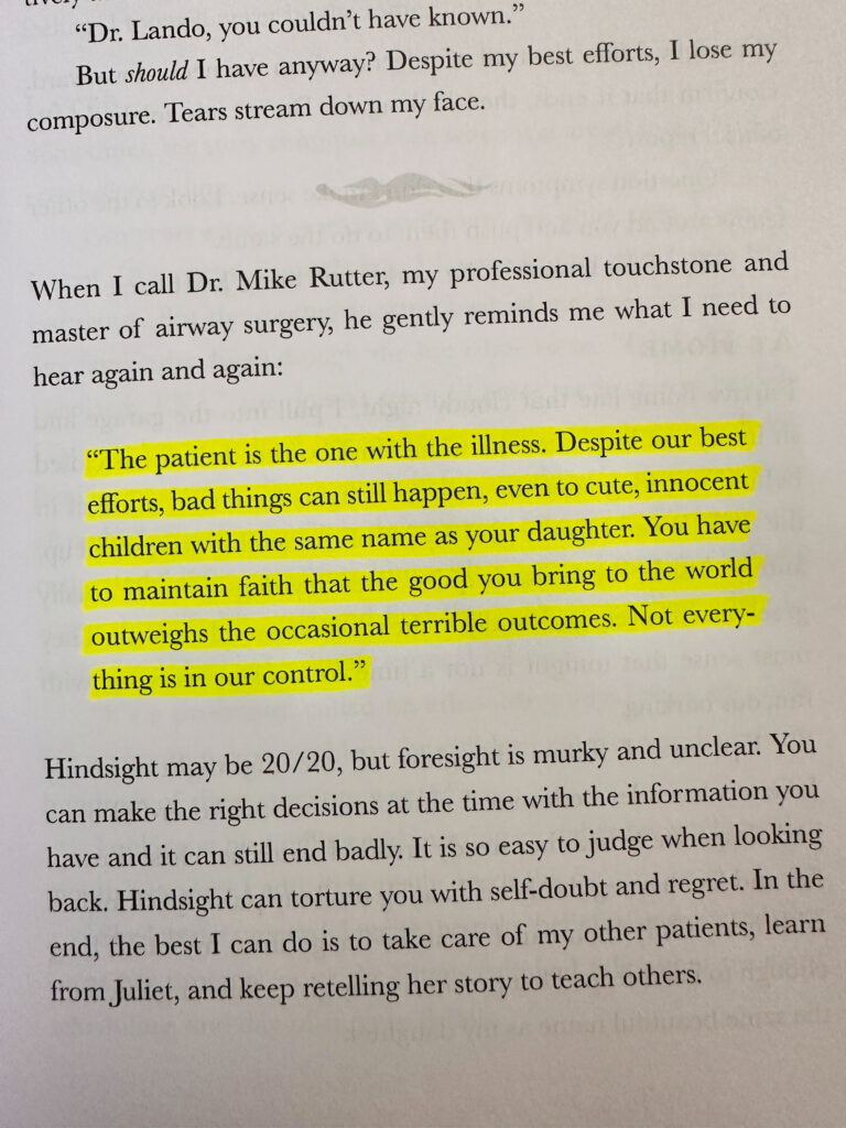She also shares the heartbreaking story of Heaven, a spirited 8-year-old girl with a congenital airway issue who unexpectedly died at home when her tracheostomy tube became blocked. The profound grief Dr. Lando experiences is palpable, even driving her to help raise money for the child’s funeral. Through these devastating stories, the author reminds us that surgeons carry an immense emotional burden, and that despite perfect technique and tireless effort, outcomes are sometimes tragically out of their control.
