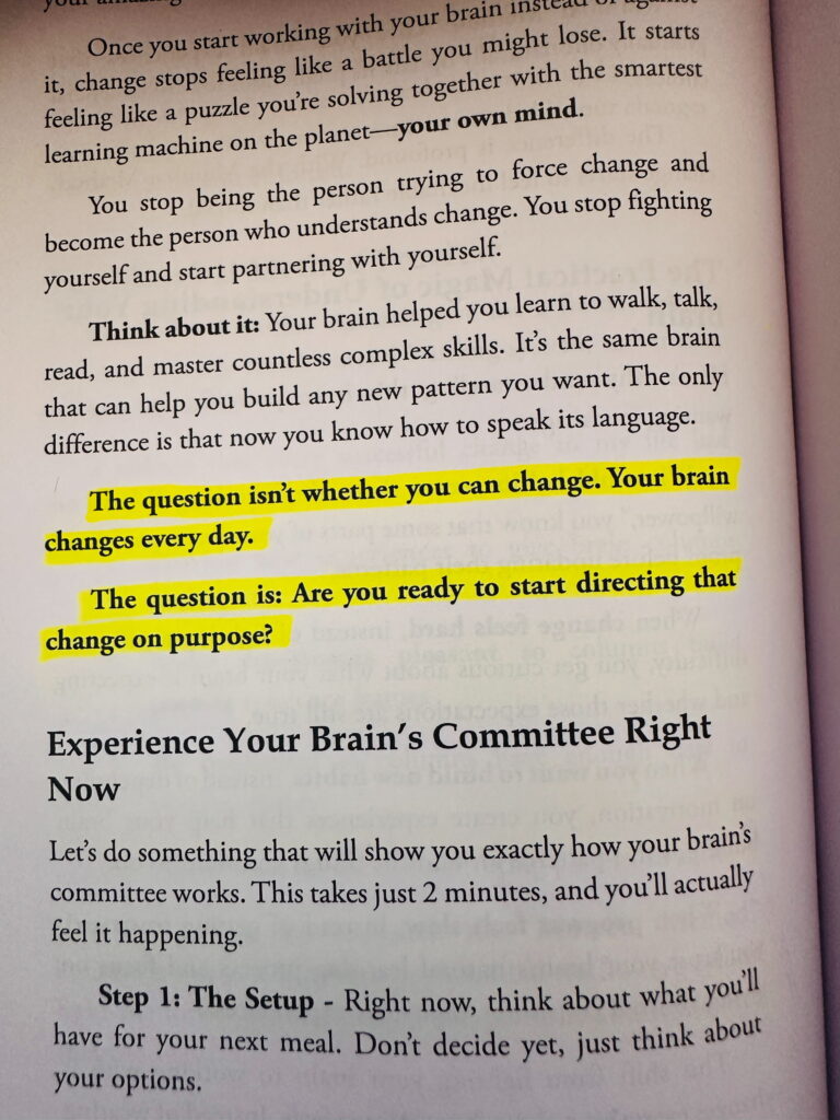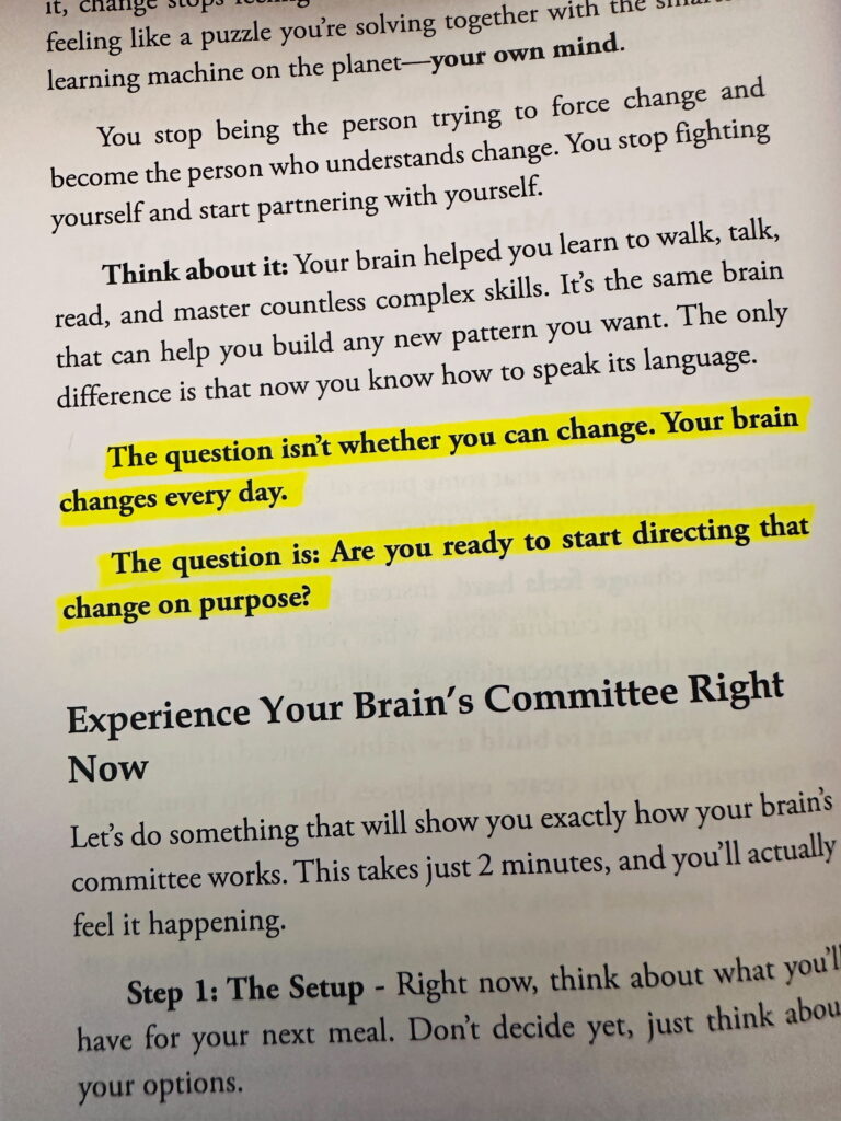 3. Connect with Who You Are If a new habit clashes with your identity, your brain will resist it. Instead of trying to become a completely different person overnight, align the new behavior with your existing values. For example, if you view yourself as a curious person, frame a new diet not as a strict permanent rule, but as a fun “30-day experiment” to learn about your body. When a change feels like a natural expression of who you already are, the parts of your brain that handle identity will vote to support it.